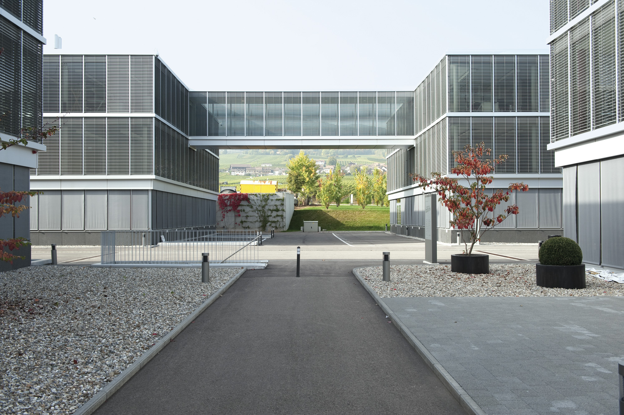 A la hauteur de Rolle, ce complexe administratif apporte une réponse adaptée aux exigences du marché en créant, à un emplacement hautement stratégique de l’Arc lémanique, un centre de haute qualité destiné à l’accueil d’entités diverses. Les bâtiments prennent place sur une trame d’implantation régulière et s’affirment par la modularité marquée des façades en verre. L’ensemble est constitué de deux types de bâtiments, l’un représenté par quatre unités de 25 m par 35 m et l’autre par cinq unités de 35 m par 60 m. Ces dernières bénéficient d’une façade double peau vitrée, architecturale, côté autoroute offrant une protection phonique. L’ensemble a obtenu le label Minérgie et chacune des entités bénéficie d’un accès individuel, via les voies de circulations internes tracées sur la parcelle. Cette dernière accueille encore une aire de parcage en plein air élégamment aménagée et ombragée.