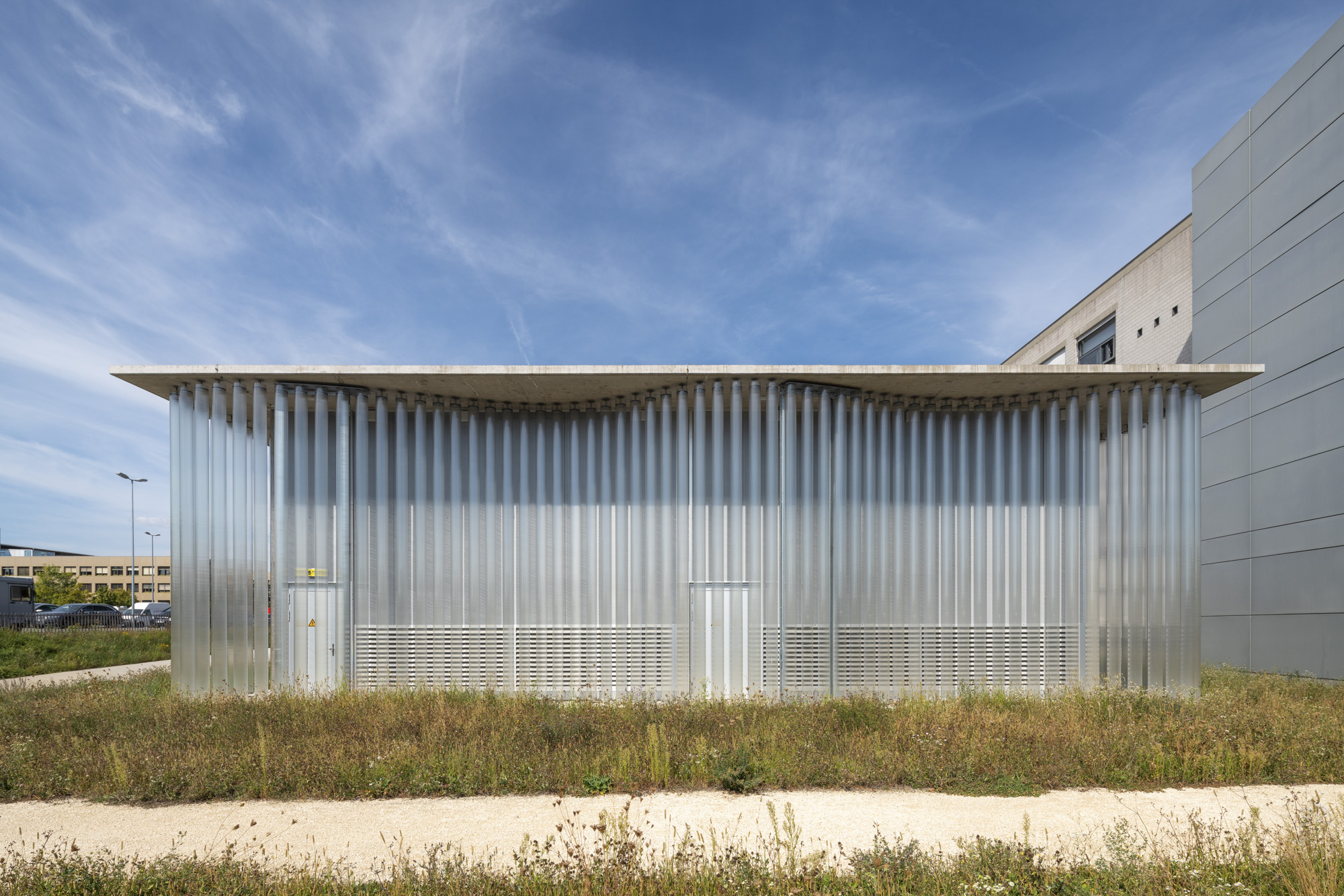 Le projet du transformateur électrique constitue l’infrastructure électrique principale d’entrée du site de l’EPFL. Situé sur le front sud, le long de la route cantonale, le bâtiment cherche par sa matérialité vitreuse à participer au front sud de l’EPFL, vitrine technologique et architecturale avec comme pièce maîtresse le Rolex Learning Center. Par son enveloppe diffuse de tubes en verre polycarbonate, l’édicule technique met en lumière son programme «électrique».
